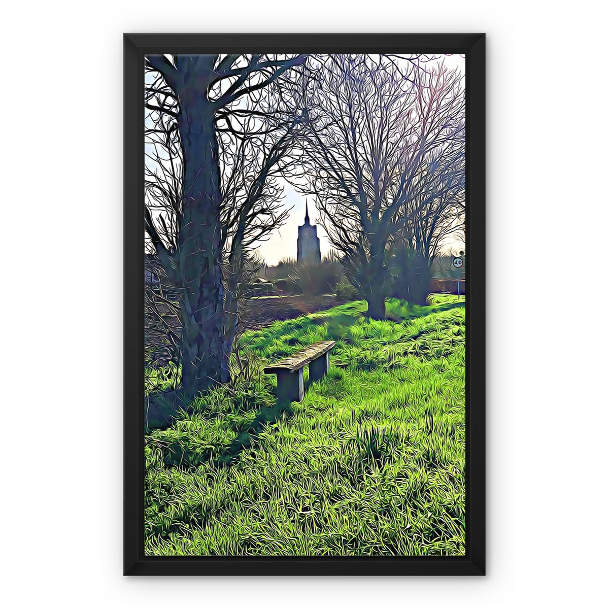 Bench on Gardiners Lane - Illustrated Framed Canvas
